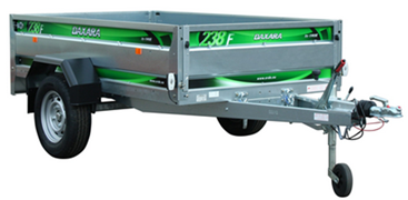 | Caractéristiques techniques | Longueur (A) (cm) | Largeur (B) (cm) | Hauteur ridelle (C) (cm) | Volume utile (m3) | option ridelle grillagée 50cm | Volume avec ridelles grillagées (m3) | Hauteur du plancher (D) (cm) | Longueur totale (E) (cm) | Largeur totale (F) (cm) | Poids total (kg)* | Poids à vide (kg) | Capacité de charge (kg) | Taille de pneu (pouces) | Essieu simple / double essieu | Timon en T ou en V | Avec frein / sans frein | |||||||||||||||||||||||||||||||||||||||||||||||||||||||