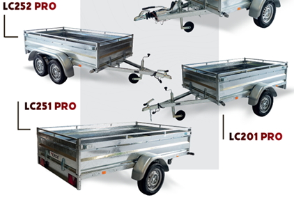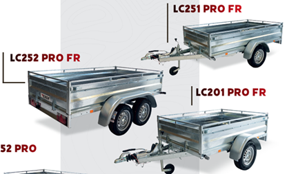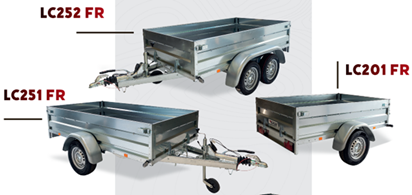 | LC PRO | MMA (PTAC) ( | Charge utile (kg) | Poids à vide (kg) | Dim. hors tout (c | Dim. utile (cm) | Volume utile (m3 | Ridelles grillagée | Vol avec ridelles | Hauteur | Charge essieu | Roues | Roue jockey ( | Caisse bascul | Ridelle avant | Freinage | ||||||||||||||||||||||||||||||||||||||||||||||||||||||||